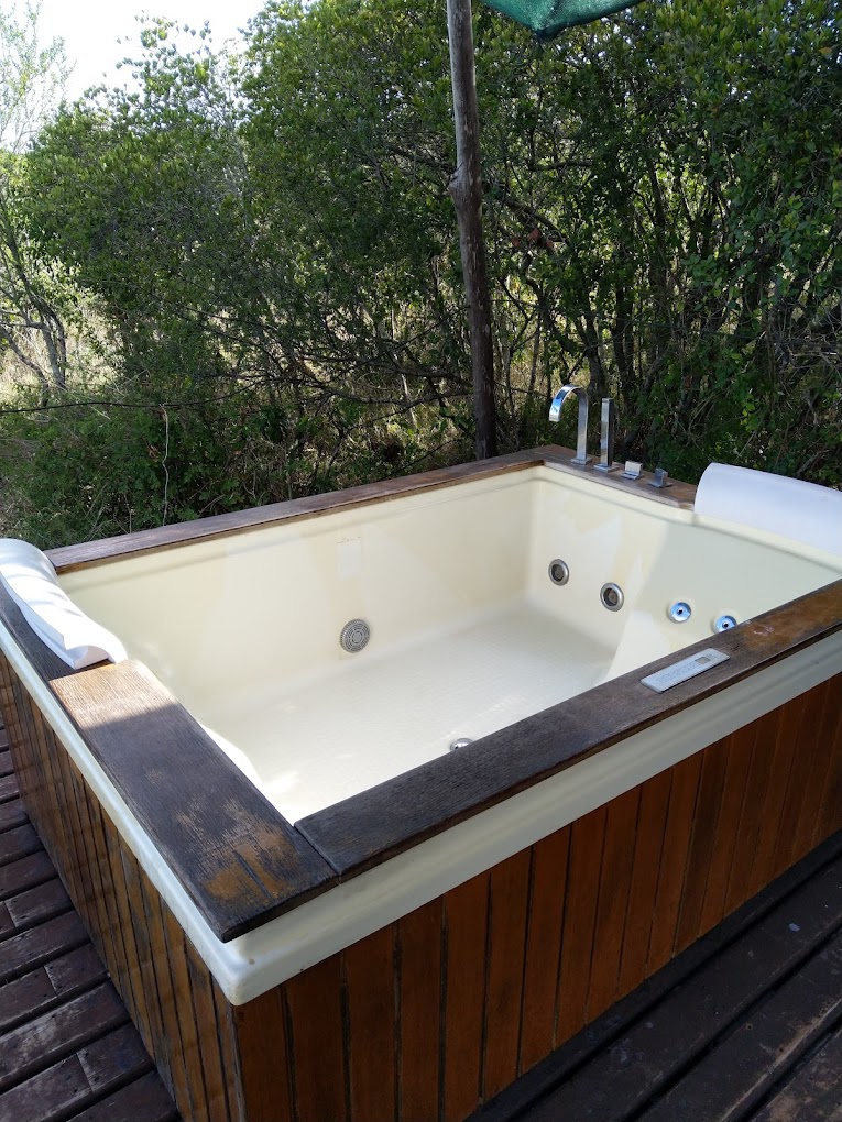 The Camp has 6 tents that have outdoor bathtubs and one tent that has an outdoor jacuzzi