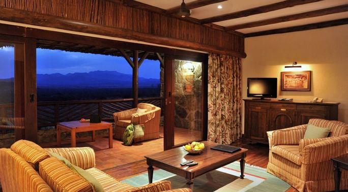 Resplendent Kilaguni Suite is located in the suites building with stunning views over the water hole and the Chyulu Hills.